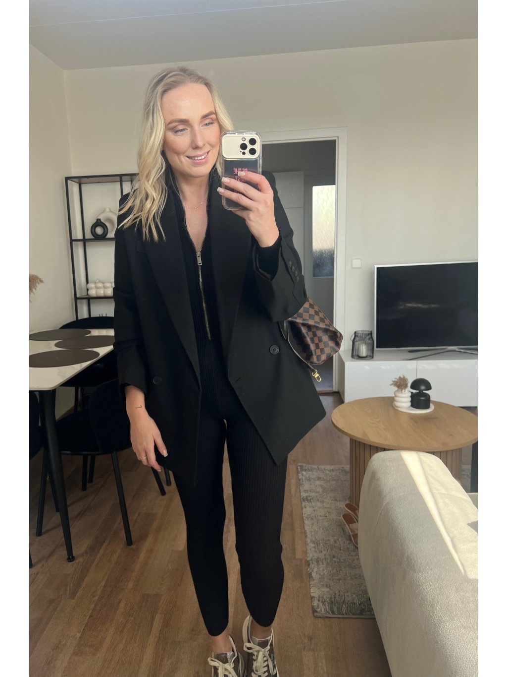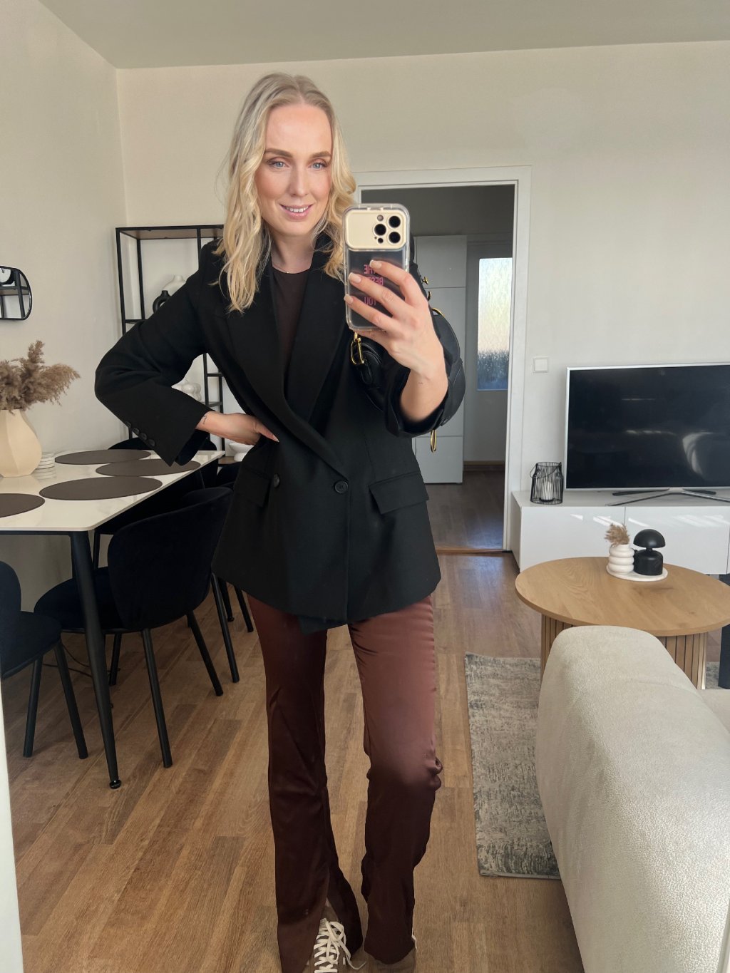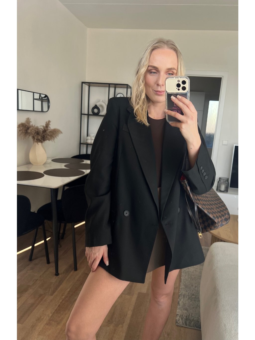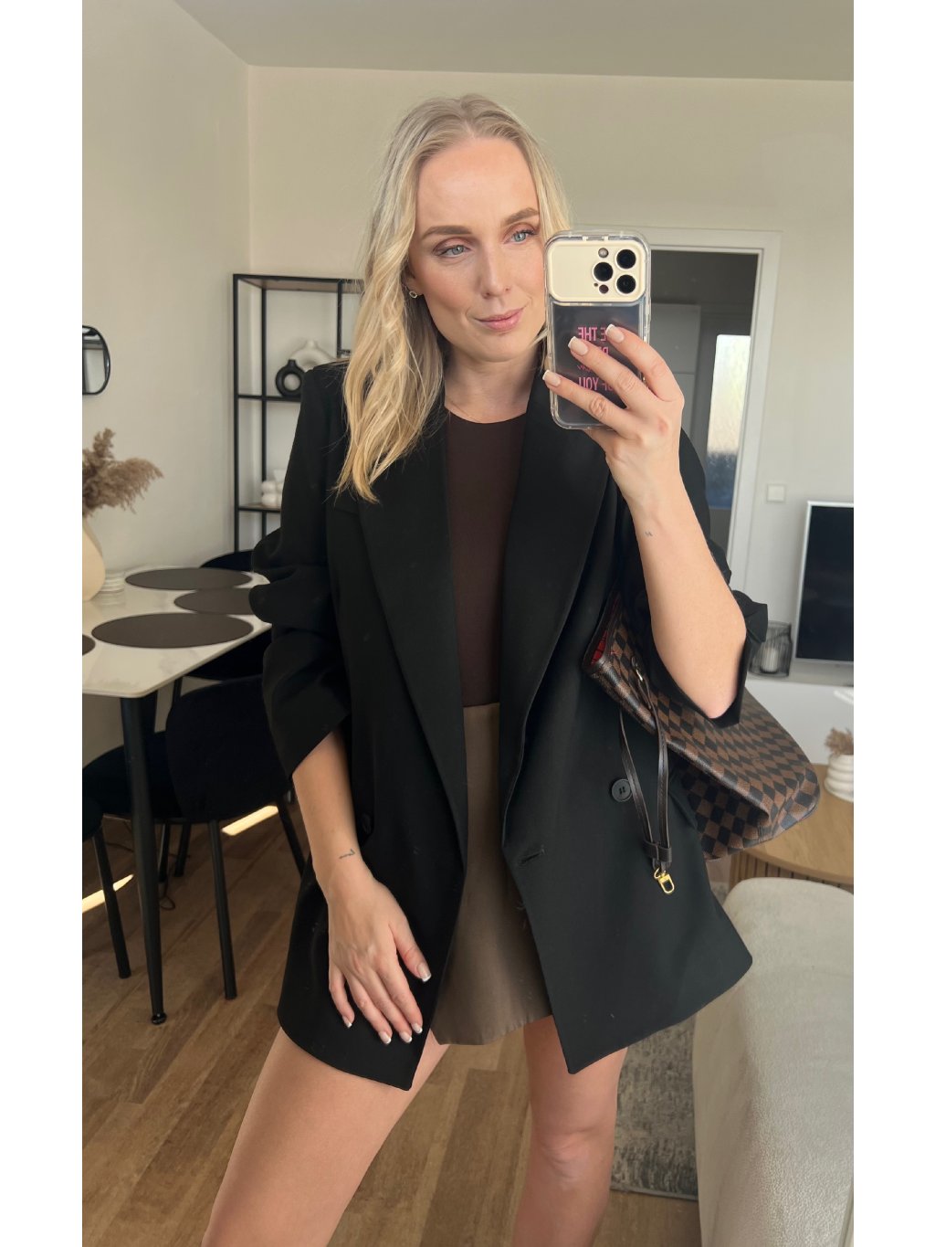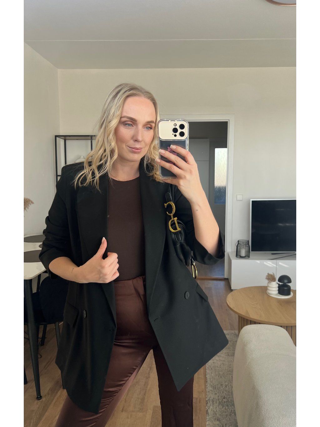 Černý blazer je ten kousek, který ti zachrání šatník. Stačí ho přehodit přes top/šaty a outfit hned působí upraveně, luxusně a sebevědomě. Klasický střih s klopami sedí krásně na postavě a díky černé barvě ho sladíš úplně se vším – od džínů až po elegantní kalhoty.