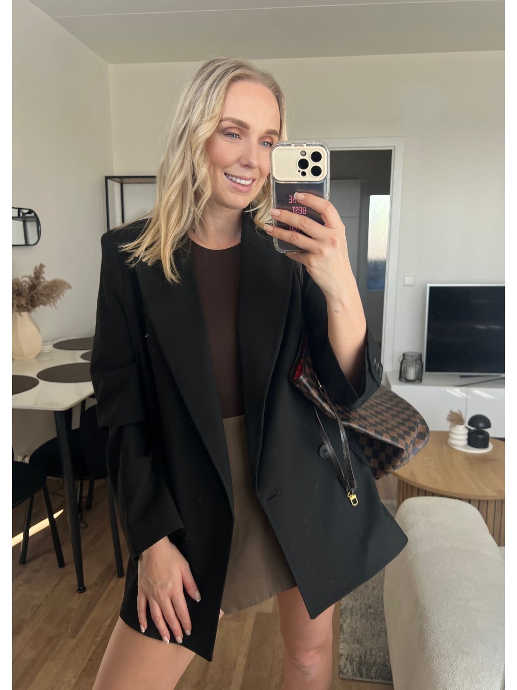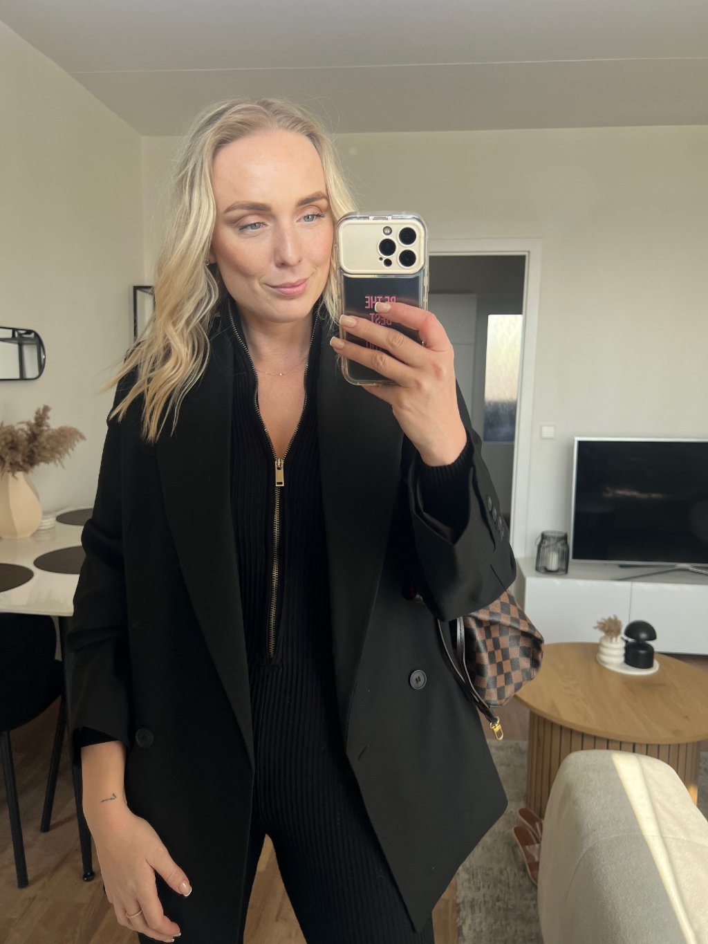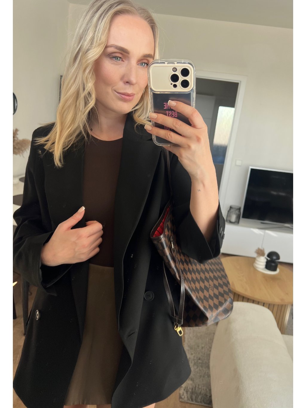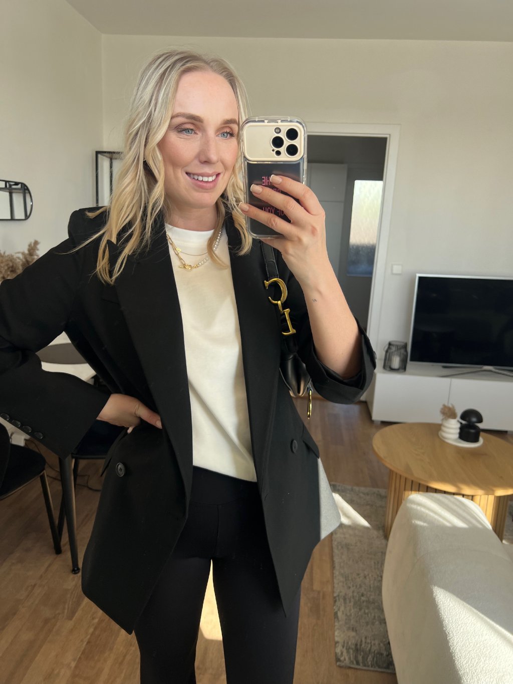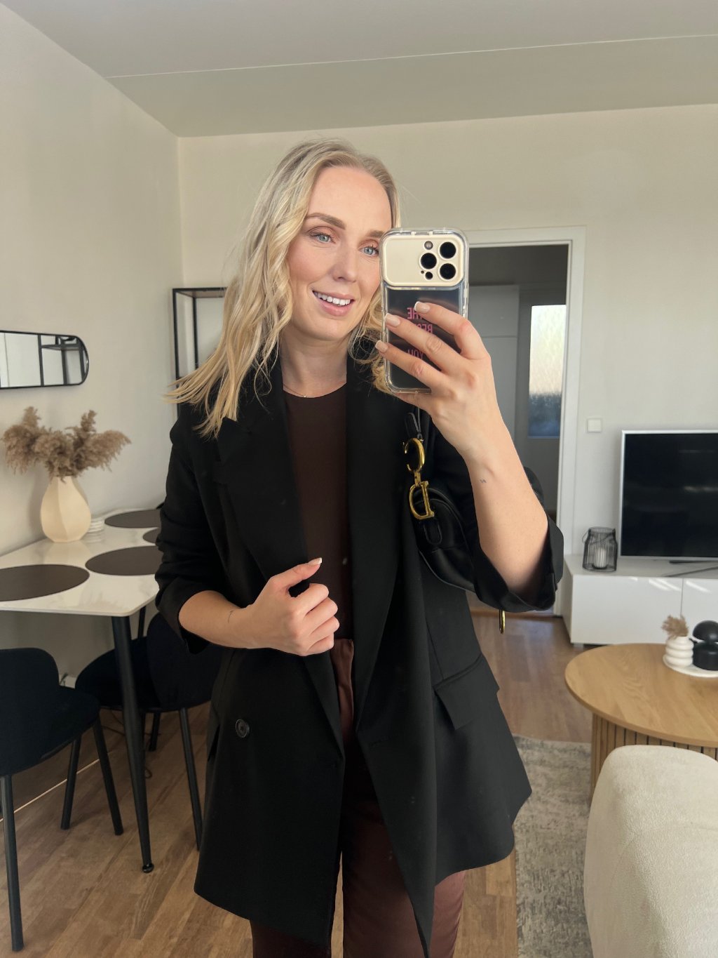 Černý blazer je ten kousek, který ti zachrání šatník. Stačí ho přehodit přes top/šaty a outfit hned působí upraveně, luxusně a sebevědomě. Klasický střih s klopami sedí krásně na postavě a díky černé barvě ho sladíš úplně se vším – od džínů až po elegantní kalhoty.