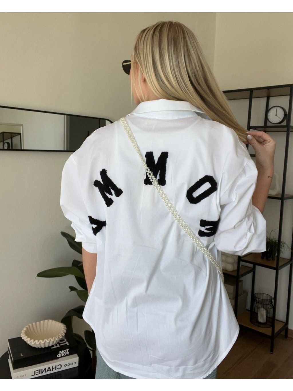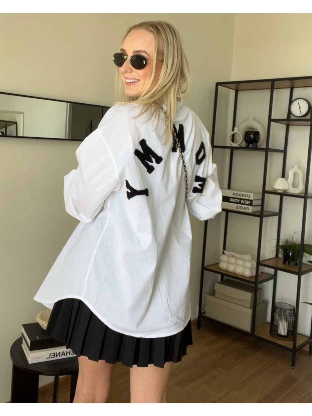 Oversized košile s nápisem na zádech, která spojuje pohodlí a styl v jednom. Volný střih, 100% bavlna a výrazný detail na zádech z ní dělají nepřehlédnutelný kousek do každodenního šatníku.