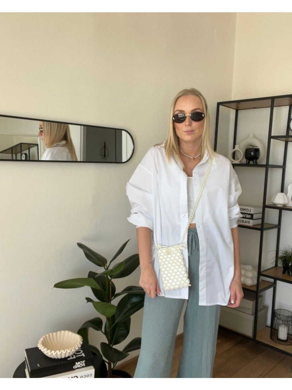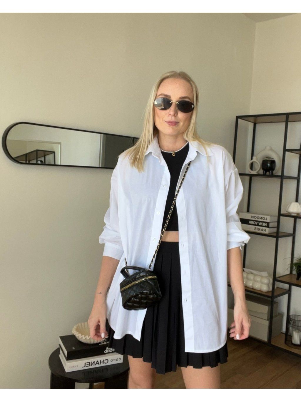 Jedna košile, nekonečně možností. Tahle oversized košile s nápisem na zádech je přesně ten kousek, který promění i jednoduchý outfit ve stylový look.