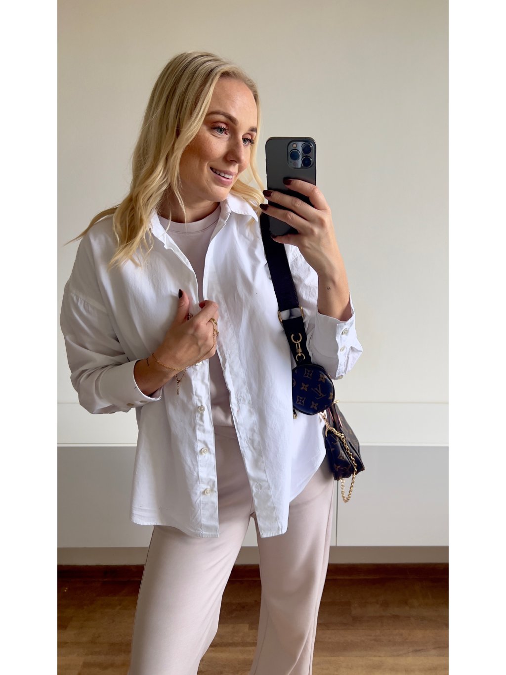 Tento starorůžový komplet krásně ladí s jemnými neutrálními tóny (bílá, krémová, nude), zemitými odstíny (camel, světle hnědá, olivová), pastelovými akcenty (baby blue, světle šedá) nebo výraznějšími tóny (tmavě modrá, cappuccino). Vytvoříš s ním jemný, elegantní i ležérní outfit. 🌸
